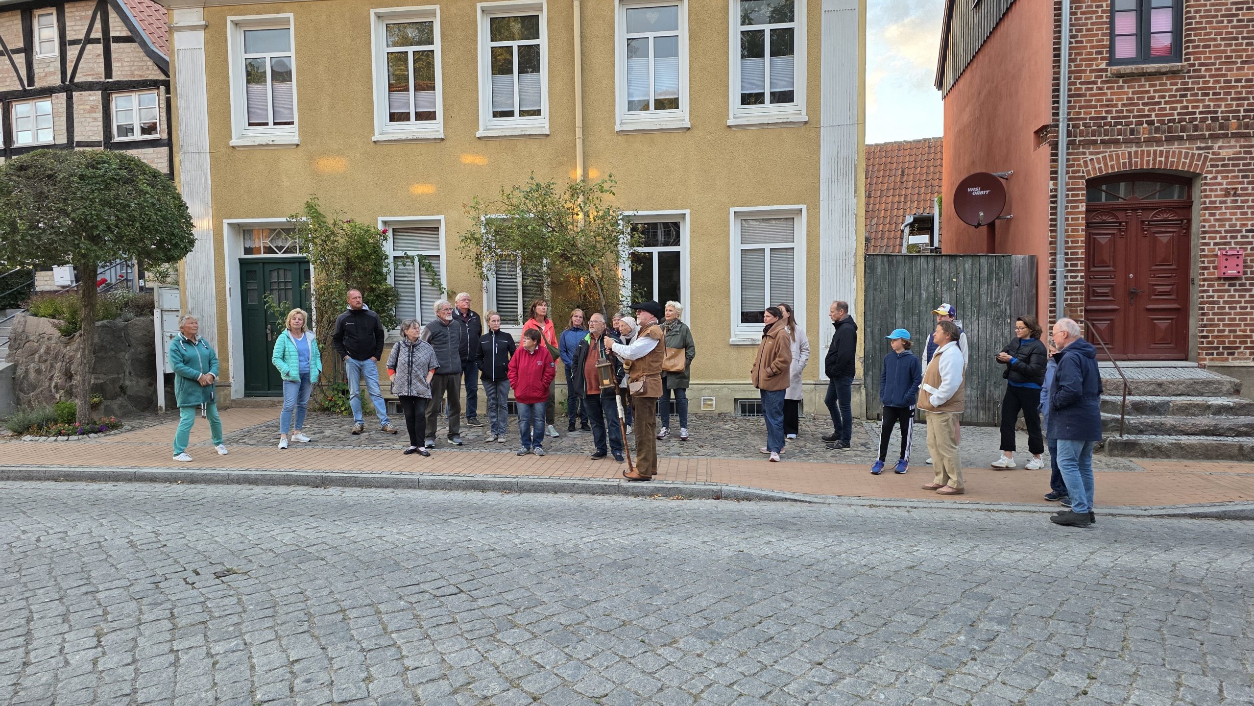 Am 29.9.2024 hat unser Stadtausrufer wieder viele Interessierte auf seinen Rundgang durch Dassow mitgenommen.