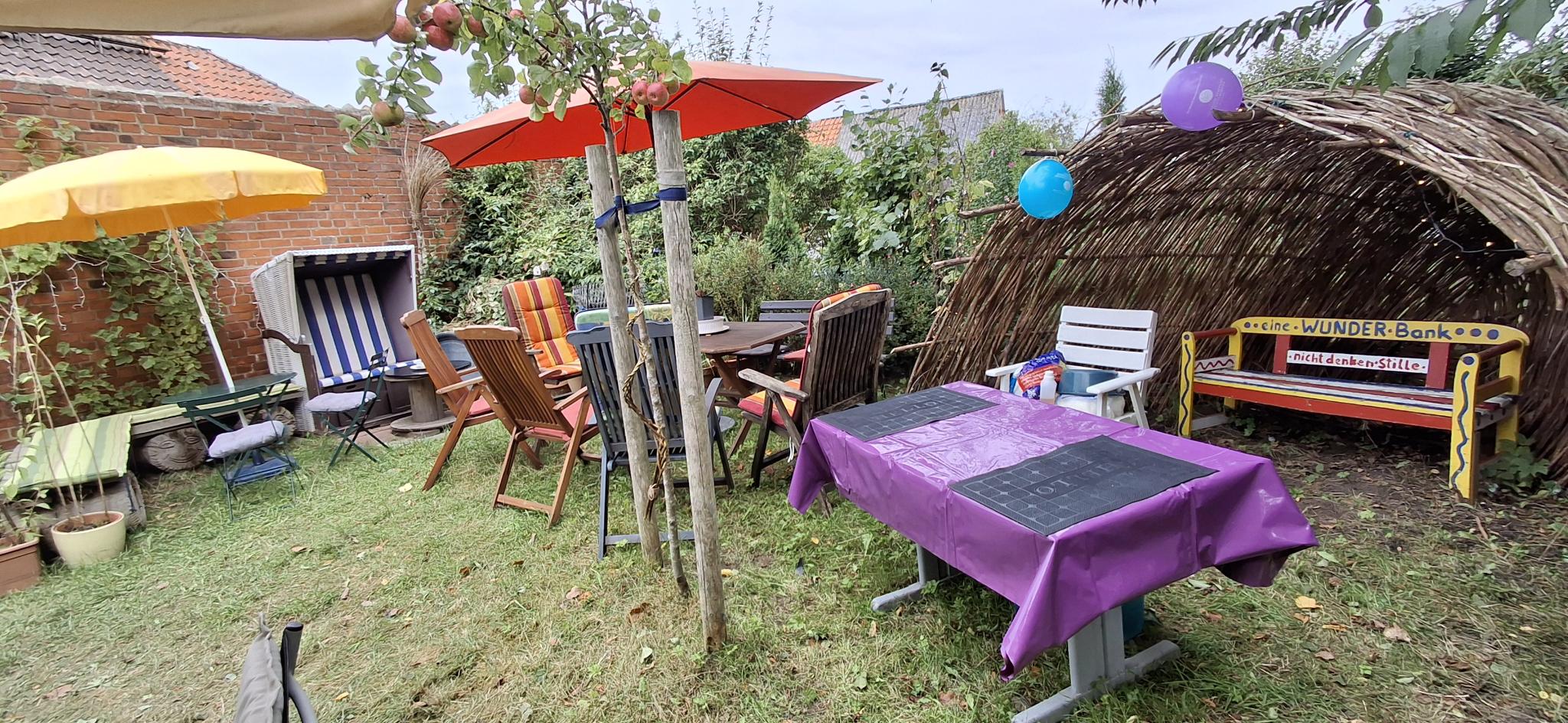 Unsere traditionelle „Feier mit Feuer“ war wieder gut besucht, den vielen Gästen schmeckte der erste Glühwein der Saison und nach einer Bratwurst wurde Schlange gestanden. Bei heimeliger Atmosphäre auf der Terrasse und im Garten der Altenteilerkate haben wir gemeinsam den Tag der deutschen Einheit gefeiert.